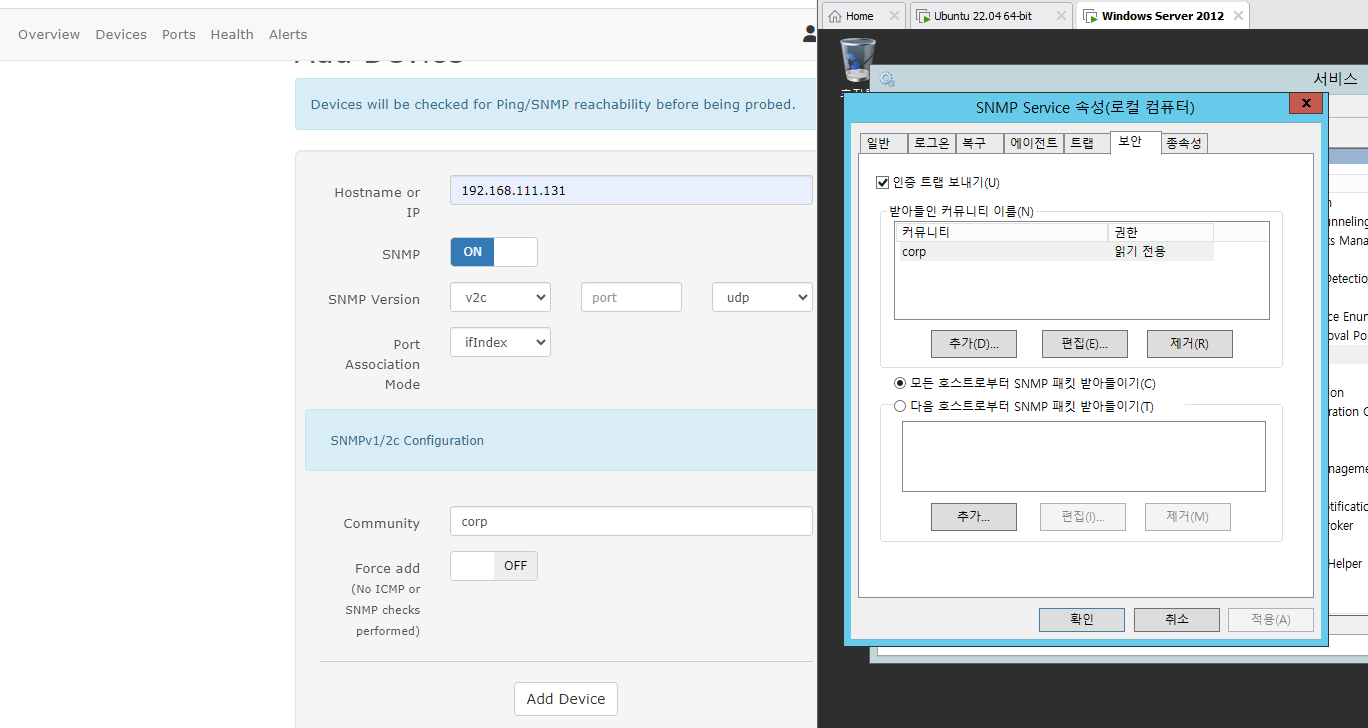 SNMP 접근통제와 Community String을 잘 생각해서 Windows Server 2012 디바이스를 등록해보자.
