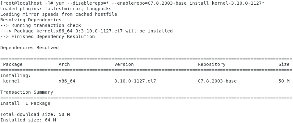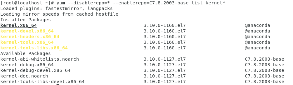 disablerepo와 enablerepo 옵션을 사용했는데, 일시적으로 모든 repository를 disable하고 C7.8.2003-base repository만 활성화(enabled) 하였기 때문이다.